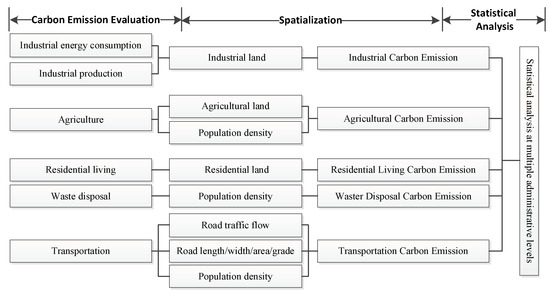Although much work has been done in this field, there are still several barriers hindering the uptake of multiple level evaluation, and these barriers include system boundary definition, data availability, dynamic inter-building effects contributed by urban morphology, uncertain preferences for occupants’ life-style, integrated modelling and the less standardized production process of precinct objects caused by their unique characteristics [25,26,27,28,29]. Moreover, the literature research and datasets are more suitable for large scale carbon emission evaluation, such as at the regional and provincial scale, and have difficulties in reflecting the spatial pattern of carbon emission in cities.
