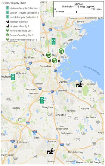 - Alkhayyal, B.; Gupta, S.M.; Eckelman, M.J. Managing environmental issues in reverse supply chain. In Proceedings of the Institute of Industrial Engineers (IIE) Annual Research Conference, Anaheim, CA, USA, 21–24 May 2016. [Google Scholar]