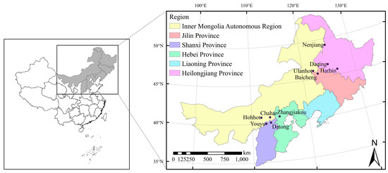 The 10 sites selected for case studies of rain-fed oat in North and Northeast China.