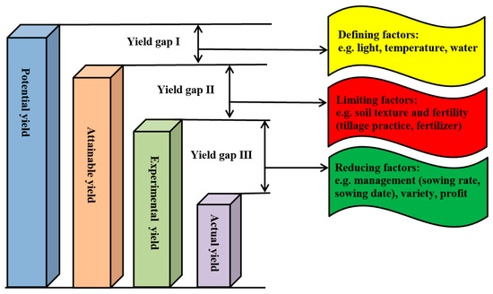 In contrast, given that the limiting factors of YG-III are mainly the agronomic practices that are relatively easier to be optimized, it is feasible for farmers to increase their yields by narrowing the YG-III. There are many constraints on YG-III, among which the management measures of farmers play an indispensable role. In this study, we find that extensive and diversified management methods are the main reasons for the difference in yield between different farmers’ fields and experimental stations, such as excessive rates of fertilizer application, unreasonable fertilization methods, high sowing rate, unsuitable sowing date, and mixed varieties. To understand farmers’ actual yield limitations well, the fertilizer use, planting date, variety, and other factors should be taken into account [30]. The actual yield is usually much smaller than other kinds of yields, so it is advocated by the majority of researchers to grope for the restricting factors to actual yield in order to decrease yield gap in farmers’ fields [31,32,33]. Particularly in the regions with low level of actual yields, the yield gaps have great potentials to be closed in the near future.