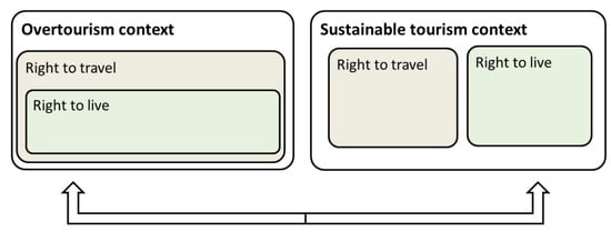 A discussion regarding overtourism in the context of the right to travel and residents’ rights is needed, as debates on overtourism, as a challenging phenomenon, are becoming more and more active. Tourism has experienced a rapid expansion and diversification worldwide in recent decades [1,2]. Tourism is considered to be the sum of the phenomena and relationships, as noted by Heslinga [2], which arise from the interactions between tourists, business suppliers, host governments, and host communities. Tolkach et al. [3] pointed out that the potential for tension between tourists and residents due to tourist behavior is rising. Nagy [4] argues that further challenges for touristic organizations are arising around achieving acknowledgement by local players. Williams and Lawson [5] (p. 270) have pointed out that “the impact of tourism on host governments and residents has been a growing area of research, as it has become widely recognized that planners and entrepreneurs must take the views of the host community into account if the industry is to be sustainable in the long term” (Allen, Long, Perdue and Kieselbach, 1988; Ap and Crompton, 1998; Belisle and Hoy, 1980; Doxey, 1975; Maddox, 1985; Murphy, 1983, as cited in Williams and Lawson, [5]). Tourism is associated with the processes of globalization, experiencing (as yet) an uncertain trajectory of growth, and generating and distributing its benefits and costs unevenly (Mowforth and Munt, 2015; Gren and Huijbens, 2016, as cited in Margaryan, [6]). This has to be emphasized, as noted by Margaryan [6], because tourism has for a long time (and often still) been uncritically perceived as an alternative to heavy industries, as it is considered light, clean, low-impact, and non-consumptive. The importance of degrowth in tourism thinking has now been considered [7,8,9]. The rights of travelers’ and the local population’s right to live where they please are important to discuss in the context of overtourism. These rights have been analyzed by different researchers. Juss [10] acknowledges that a fundamental right of travelers’—the freedom of movement—does not entail an automatic right to enter into other states. Dauvergne and Sovereignty [11] have analyzed how the right to free movement confronts the state-based international community. The importance of those rights, legal regulation, and problems were further revealed by Gilbert and Groenendijk et al. [12].