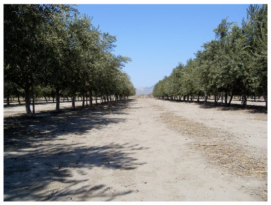 Figure 3 shows a picture of the olive grove where the experimentation took place. The farm had a structured disposition corresponding to an experimental grove. Corridors were approximately 10 m in width and 100 m long. The terrain was a pressed clay type, leveled and flat.