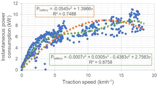 - Data acquired during acceleration—until reaching cruise speed—or deceleration were discarded. Thus, only the instantaneous power associated with a given constant speed was registered.
