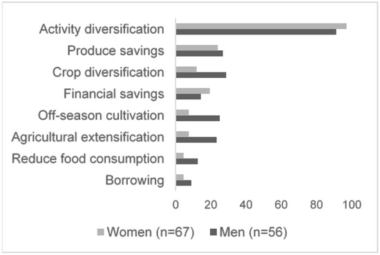 Coping strategies between gender as mentioned by study participants from three villages around Lake Alaotra (percentages; n = 123).