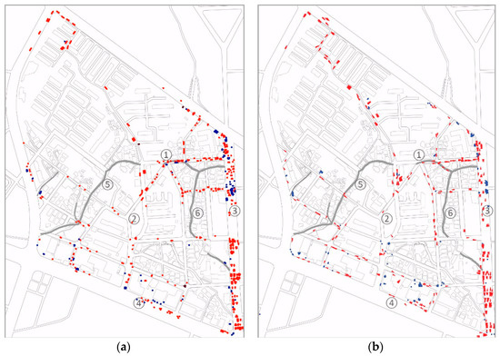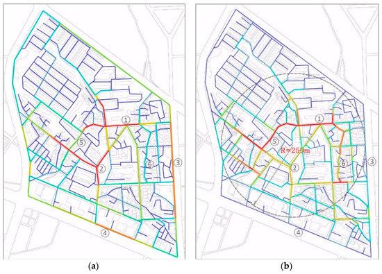 - Penn, A.; Hillier, B.; Banister, D.; Xu, J. Configurational Modelling of Urban Movement Networks. Environ. Plan. B 1998, 24, 59–84. [Google Scholar] [CrossRef]