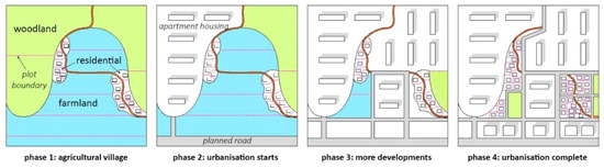 - Smith, N.R. Beyond Top-down/Bottom-up: Village Transformation on China’s Urban Edge. Cities 2014, 41, 209–220. [Google Scholar] [CrossRef]