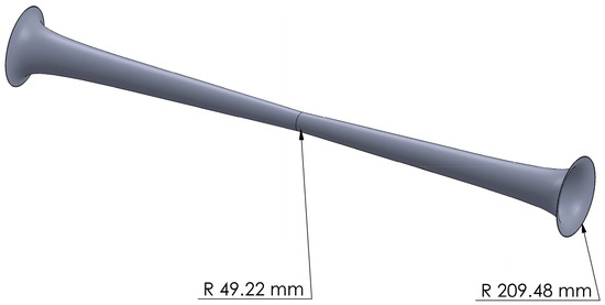 Once the initial nozzle was designed, it was prototyped with an epoxy polymer resin with a superficial treatment to reduce its internal roughness below 10 micrometers, as we can see in Figure 5. After that, it was tested and simulated in an open loop wind tunnel. In particular, in this initial test, three different experiments were performed at a constant inlet temperature of 19 °C, an air velocity of 1.3 m/s and relative humidity values of 52%, 77% and 90%, to validate the simulation results with the sample conditions.