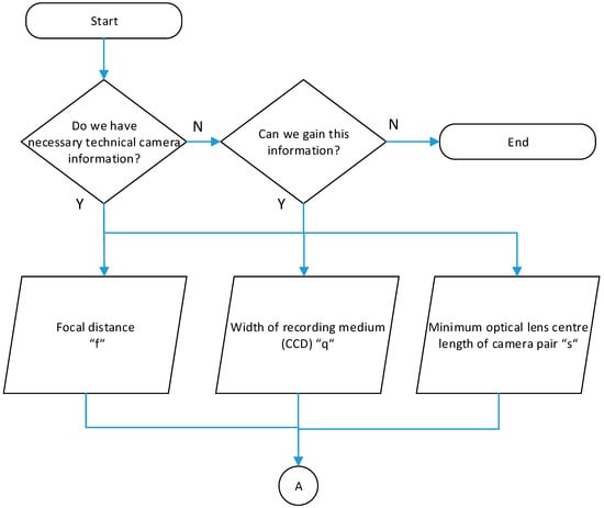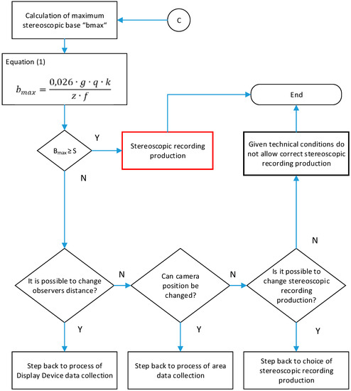 After the maximum correct stereoscopic base “bmax” calculation, according to Equation (3) and Equation (4), comparison with a minimum possible distance of camera centers “s” follows. In other words, the possibility to reach the required distance of camera centers by given technical equipment will be verified.