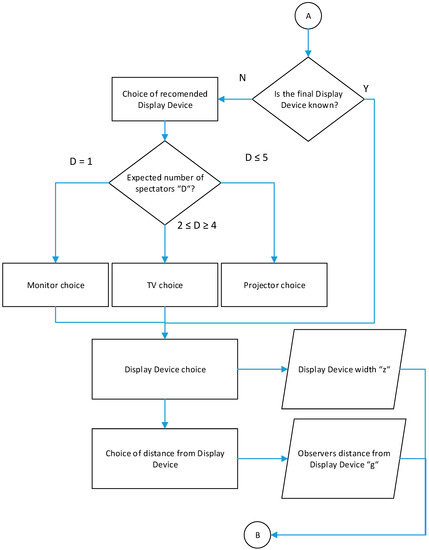 The second figure is related to the distance from an observer to the display device. Furthermore, it is an arrangement of the presentation room. Distance determination from an observer to display device usually depends on specific technical conditions of a presentation room. According to manufacturers’ recommendations and users’ experience, the distance should be two or three times the diagonal of the display device [20,21,22]. However, such recommendations are only indicative and very subjective. The evaluation must always be based on the real distance of the observer from the display device.