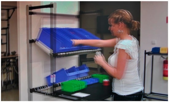 A practical applicability check of stereoscopy, such as a supportive instrument when making ergonomic analysis, is made in cooperation with the Slovak Ergonomic Society, civil association (SES o.z). Video recordings were recorded at Zilina’s Intelligent Manufacturing System (ZIMS) that had been established in order to support new innovative solutions. The model situation of a connecting plug’s manual assembly was created due to the needs of the experimental check. Assembly of the connecting plug was performed after a short training. This assembly was recorded thanks to an advanced stereoscopic camera system. Twelve ergonomic analyses were processed from a created stereoscopic recording afterward [25,26]. Ergonomic analyses were made to confirm or disprove possible contribution of the stereoscopic display when preparing the ergonomic analysis. An example of such a stereoscopic display monitor is shown in Figure 12.