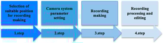 The methodology of goal-directed stereoscopic recording and its production consists of a set of steps registered by a descriptive diagram. Firstly, the framework procedure was created by the registration of individual ongoing processes (Figure 1). Then, individual processes were analyzed and described in detail. In the final step, bonds among particular processes were described. As a result, the detailed methodical procedure of a stereoscopic recording and its production was made. This procedure allowed a 3D picture, which complies with biological requirements for human spatial vision.