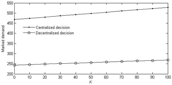 where “c” represents variables used in centralized decision-making. If we substitute Equations (8) and (9) into the market demand function