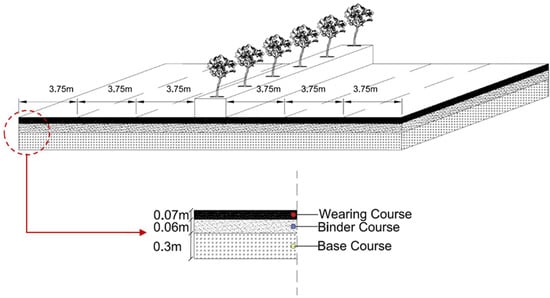 Cross section of the asphalt pavement structure under study.