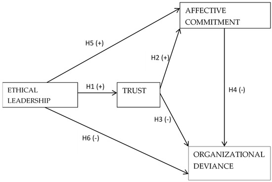 On the basis of prior research [6], employees recognize that their bosses are an inspiration for them; following positive leader–member interactions, employees form an ethical opinion toward these leaders and the organization. This research contributes to the EL literature by recognizing two important intellectual mechanisms, which are trust and affective commitment, which prevent employee’s workplace deviance actions. Furthermore, EL may remarkably discourage employee deviant behavior. More so, EL encourages employees to perform their task. By doing so, the employees will develop critical cognitive resources, including trusting their bosses. Consequently, they will be motivated to express their own opinions about the organization and the expected behavior of the ethical leader; thereby, they will become very committed and avoid workplace deviance behaviors.