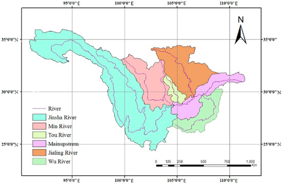 Location of the upper reaches of the Yangtze river and its sub-watersheds.