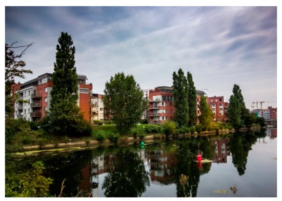 The location and development of Poznań is connected with the Warta river valley, which can be described as an ecological and landscape axis of the city. Throughout the centuries, the spatial transformation of the city led to “turning away” from the river, especially in the post-war period. Yet, the river still constitutes a crucial element of the urban ecosystem, and the municipal system of the green wedges and rings greenery is based on its tributaries [89].