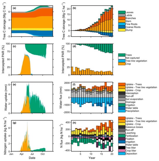 - three-dimensional tree–crop interactions for light, water, and nitrogen;