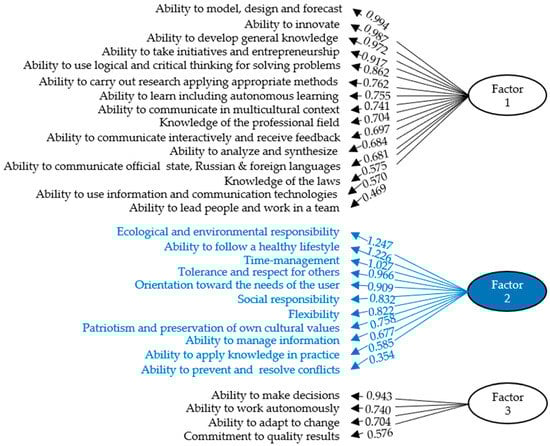 Visual representation of the exploratory factor analysis in Latin America. Importance of competencies (showing factor loadings higher than absolute 0.3).