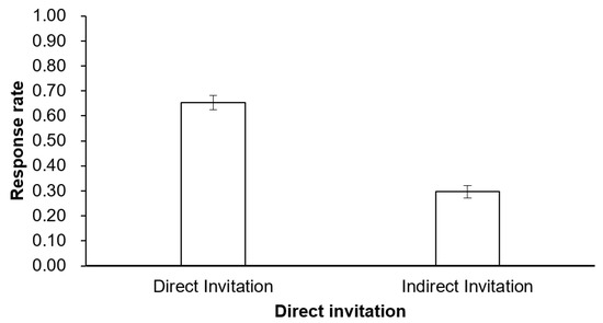 Direct invitation for surveys meant that researchers invited participants via face-to-face contact or telephone, whereas indirect invitation was via mail or e-mail, following the definition used by Bowling [57]. In an earlier, study, Groves and Couper [8] found that direct invitation led to higher participation rates.