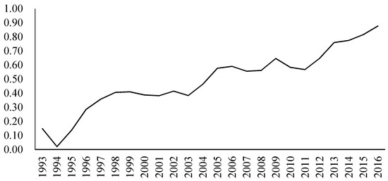 3.1.3. Moderating Variable—Interest Rate Marketization and Soe