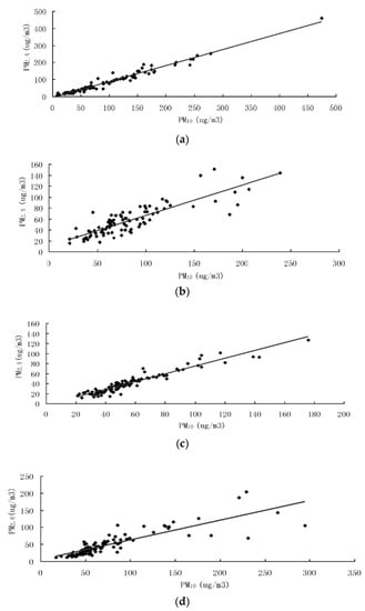- Sahanavin, N.; Prueksasit, T.; Tantrakarnapa, K. Relationship between PM10 and PM2.5 levels in high-traffic area determined using path analysis and linear regression. J. Environ. Sci. 2018, 69, 105–114. [Google Scholar] [CrossRef]