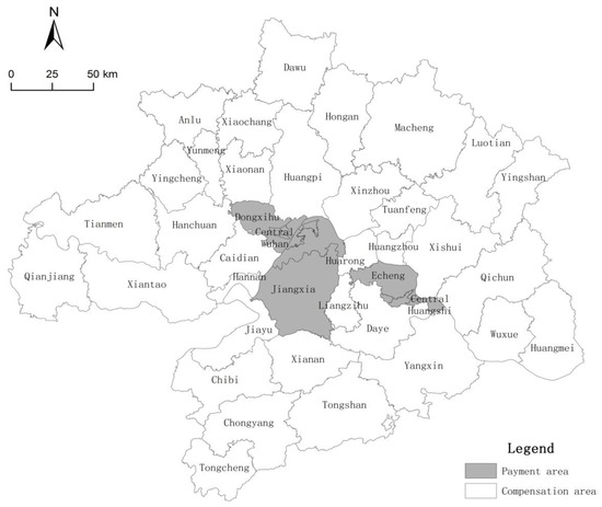 Distribution of farmland ecological payment areas and compensation areas in Wuhan Agglomeration.