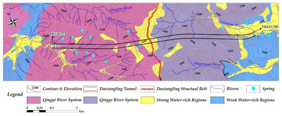Regional hydrogeological map of the Daxiangling tunnel.