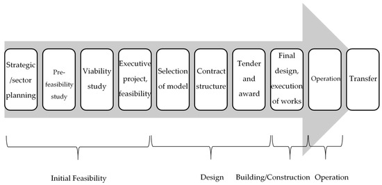 However, in order to have an inclusive social sustainable development, the engagement and participation of all relevant stakeholders (e.g., supplier, operator, local community’s organizations, unions, ecologists) must be ensured. In fact, multiple cases exhibit that a positive involvement with stakeholders can be a decisive factor for the success of a project [36]. The engagement of stakeholders refers not only to making information available to the public—which is indeed necessary to achieve public accountability [37]—but also to actively involve the society in the PPP process to incorporate public values and preferences in decision making [38]. An active public involvement refers to the gathering of citizens’ opinions and perceptions through several activities such as public hearings, open houses, citizen surveys, or web-based forums, among others [39]. The participation and engagement of stakeholders can be enabled at the different stages of the PPP life cycle, including in the design phase, the building or construction phase, and during the operation of the PPP project (Figure 2).
