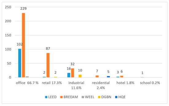 Existing buildings in various systems. Authors’ own elaboration based on PLGBC data [36].