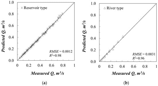 Correlation of discharge data for (a) reservoir type and (b) river type.