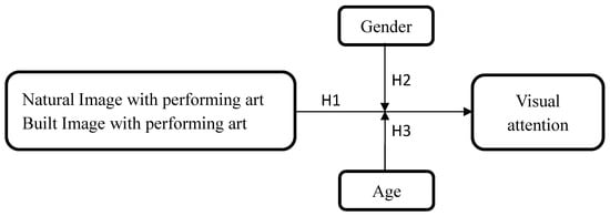 According to attention restoration theory, nature can provide a respite for individuals’ attention mechanism and help them rejuvenate, while at the same time evoking positive emotions (i.e., serenity and vitality) and reducing negative emotions (i.e., anger, sadness, and fatigue) [9,15,41]. The beautiful natural environment in a hotel’s images provides an opportunity to evoke relaxing and soothing emotions from customers [10]. The empirical results of Engelke and Le Callet [31] show that there is indeed a close relationship between perceived interest and overt visual attention when individuals observe natural pictures. Therefore, taking nature as the background feature of performance art images may be able to capture the customer’s visual attention [8,10]. The empirical results of Tyrväinen et al. [41] found that, relative to the built environment, the natural environment could restore travelers’ physical and mental vitality, for example, relieving stress, restoring well-being, evoking positivity, and providing an emotional lift. Wang and Sparks [10] compared the images of natural and built environments for attractiveness of the travel destination pictures, and their empirical evidence found that images of the natural environment attracted more of customers’ visual attention and were associated with a higher fixation count than images of the built environment. Thus, choosing images preferred by tourists can more accurately and effectively convey particular service messages [16,36]. Therefore, this study presents the following hypothesis: