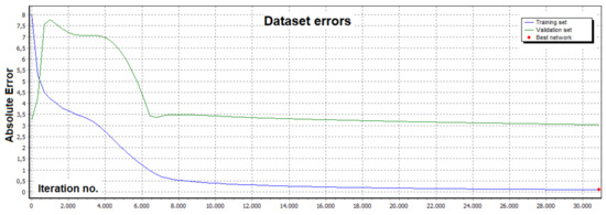 Network error in training process after 30,878 iterations. : Authors’ graphic representation using Alyuda.