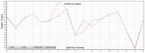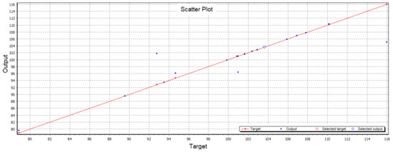 Figure 8 indicates a scatter plot of the actual and forecasted target values, where the horizontal axis displays the actual values and the vertical axis displays the forecasted values. The result of this forecast is presented in Table 8.