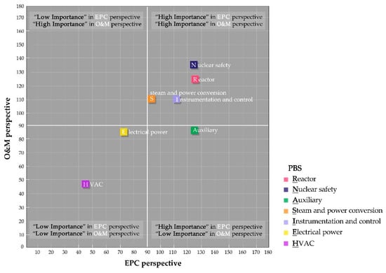 In the proposed process of evaluating each physical element (e.g., reactor), it is evaluated from two different perspectives; one from the engineering/procurement/construction (EPC) perspective as well as from the operation/maintenance (O&M) perspective. This is due to the fact that an EPC process may have different characteristics to those of the O&M process in terms of evaluation criteria (e.g., complexity of change procedures). The horizontal axis of ‘effectiveness portfolio’, as shown in the Part D of Figure 2, indicates the single index score from ‘EPC’ and the vertical axis presents the single index score for ‘O&M’ so that two different perspectives can be graphically compared.