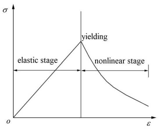 The research shows that the strength parameters of surrounding rock will be obviously reduced in the nonlinear stage during the excavation process of deep-buried projects due to the connections among the macro-cracks in the so-called strain-softening rock [19,20]. When the stress of the rock reaches peak strength, the deterioration will become more apparent as it continues to increase. The material parameters in the commonly-used Mohr–Coulomb (MC) model are preset to be constant, which cannot reflect the softening effect of the surrounding rock caused by the variation in the surrounding rock parameters. Thus, many scholars are aiming to establish a constitutive relationship that can reflect the nonlinear mechanical response of rock based on a numerical simulation and the strain-softening theory [21,22].
