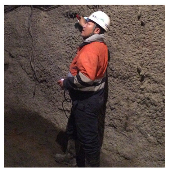 At the same time, field monitoring was carried out in the test roadway in order to measure the deformation of the roadway and compare it with the numerical simulation results. Five monitoring sections with spacings of 5 m were selected for the test roadway, and eight monitoring points were set on each section, as shown in Figure 17. The deformation of each section was periodically monitored using a laser range finder (Figure 18). In the past year, 17 measurements were made on the test roadway, which is sufficient to accurately quantify the development of the surrounding rock deformation.