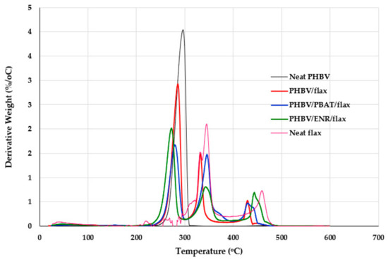 | PHBV/PBAT/flax | 14.4 ± 2.2 | 177.1 ± 27.9 | 12.2 ± 2.0 | 153.1 ± 14.1 | 369 ± 39 |