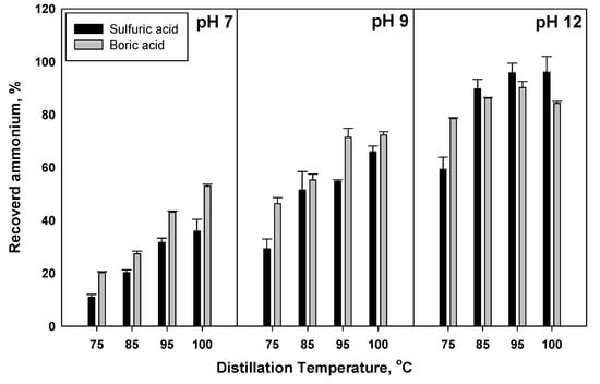 3.2. Effect of Temperature on Ammonia Recovery