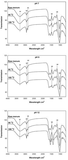 3.8. FTIR Spectra of the Raw Cow Manure and the Cow Manure Effluents
