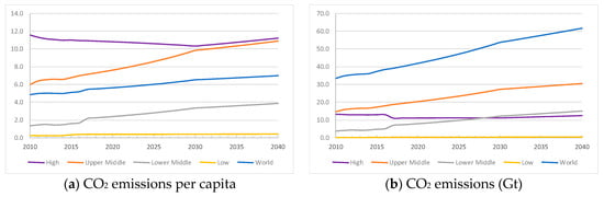 Data sources used to estimate toxic income are the following: “World Development Indicators” (WDI) database of the World Bank [21]; “World Population Prospects” of the United Nations, Department of Economic and Social Affairs, Population Division [31]; and the European Environment Agency (EEA) [32]. We selected the following series: population [21,31], total and per capita energy consumption, total and per capita CO2 and GHG emissions, total energy consumption, total and per capita real GDP (base year 2010) [21] and atmospheric greenhouse gas (GHG) concentrations (EEA) [32]. World Bank’s income groups were used for grouping countries: low income, middle income (lower and upper) and high income.