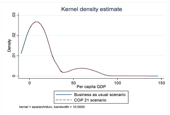 When the estimates for per capita CO2 emissions trajectory decreased, according to the C&C approach, we supposed the trajectory converged to the 2012 world’s mean, 5 tons per capita.