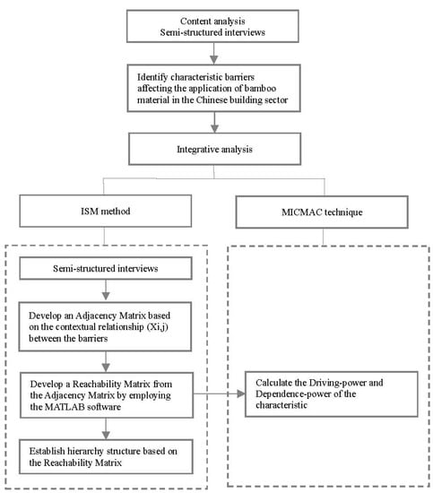 Therefore, this paper aims to summarize the benefits of applying bamboo materials, conduct a comprehensive investigation on the barriers affecting application of bamboo materials in the context of the Chinese building sector, and examine the integrated relationships between these barriers. Investigation results are expected to help concerned stakeholders build a better understanding of the application of bamboo as a green building material and develop effective measures for applying the materials in practice. The rest of this paper is organized as follows: Section 2 will discuss the benefits of bamboo for green building materials. Section 3 will describe the research methods adopted in this study. Characteristic barriers affecting the application of bamboo in China will be presented in Section 4. The significance of characteristic barriers will be discussed in Section 5. Section 6 will produce a hierarchy structure to show the integrated relationships between the identified barriers with the interpretive structural modeling (ISM) method and intricate relationships between barriers in the hierarchy will be further analyzed from driving-driven perspective by employing the Cross-impact Matrix Multiplication Applied to Classification (MICMAC) technique. Discussion and conclusions will be given in Section 7.