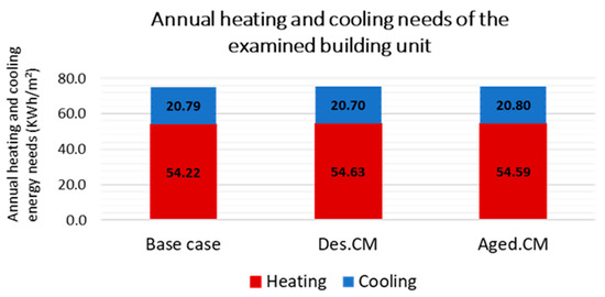 Estimated annual heating and cooling energy needs of the one-floor building unit for the 3 examined scenarios.