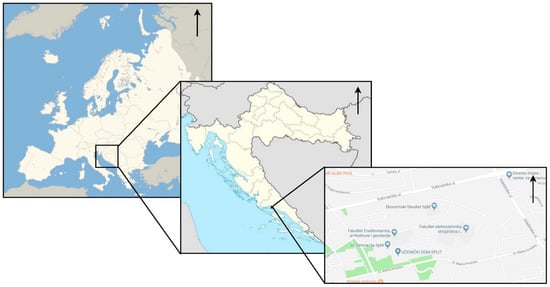 The validation of the index of fragmentation model was carried out in the area of the campus project, University of Split in the city of Split, Republic of Croatia (Figure 3).