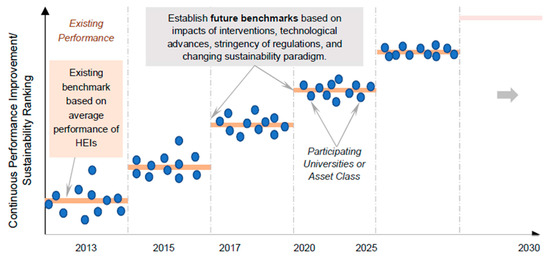 Leadership in Energy and Environmental Design (LEED) certifies a green building by verifying that the design and construction aimed at improving the sustainability performance, including energy and water efficiency, reduction of carbon emissions, etc. [76]. Agdas et al. [74] studied the EUI of 10 LEED-certified buildings and compared them with non-LEED-certified buildings. It was found that the EUI of LEED-certified buildings was higher than that of the non-LEED-certified buildings. For example, they evaluated 24 campus buildings, 10 of which were LEED-certified and the remaining non-LEED-certified buildings. They could not find a statistically significant difference between both sets of the buildings, in fact, the EUI for the LEED buildings was found to be higher than those of non-certified buildings. Existing systems do not identify the causes of poor performance and the actions required to improve the sustainability performance of universities. This is due to the diverse nature of the parameters being measured (social, environmental, economic) [77]. Moreover, communicating the sustainability assessment of HEIs goals and scope with the stakeholders is not clearly defined [29]. There is a need for an integrated system that can lead HEIs toward continuous improvement in terms of sustainability while maintaining cost effectiveness and simplicity. There is also a need to shift the focus from corrective controls to proactive action [78].