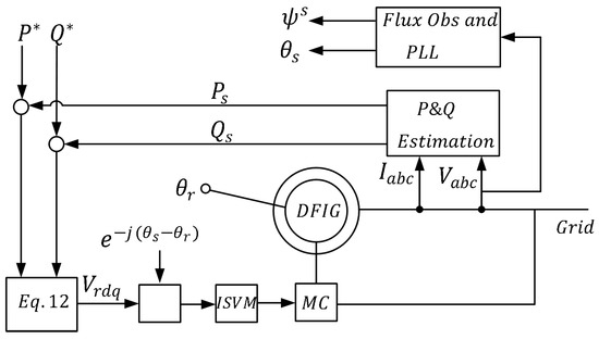 Finally, using Equations (7) and (11), rotor voltage in synchronous frame is deduced as (12). It is concluded from (12) that the reactive power variation is regulated using d-axis voltage, while active power is controlled via q-axis channel.