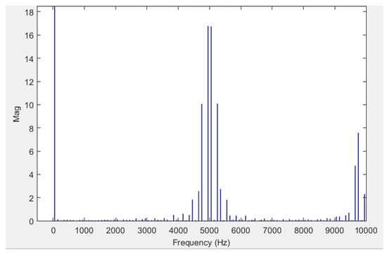 As mentioned above, the advantage of the proposed method is to have a fixed switching frequency for matrix converter modulation. Figure 17 illustrates the switching frequency spectrum of MC under test. As seen, switching frequency is fixed at 5 kHz. Therefore, the filter design for the input side of MC becomes more convenient.