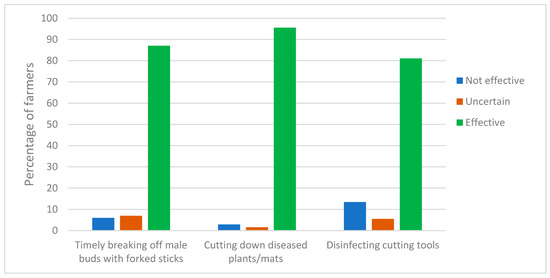 Farmers’ perceptions on effectiveness of the BXW control practices. (Source: Survey data).