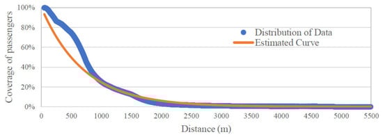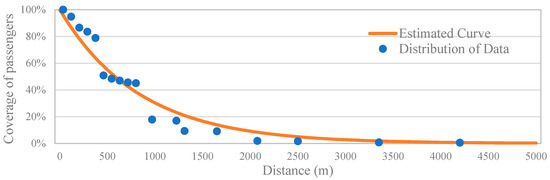 Distance decay analysis has received more attention in field of investigating distances travelled to access transit stations [,,,]. The exponential distance decay function to forecast transit walking accessibility was put forward by Zhao et al. [].