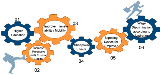 - Kenayathulla, H.B. Higher levels of education for higher private returns: New evidence from Malaysia. Int. J. Educ. Dev. 2013, 33, 380–393. [Google Scholar] [CrossRef]